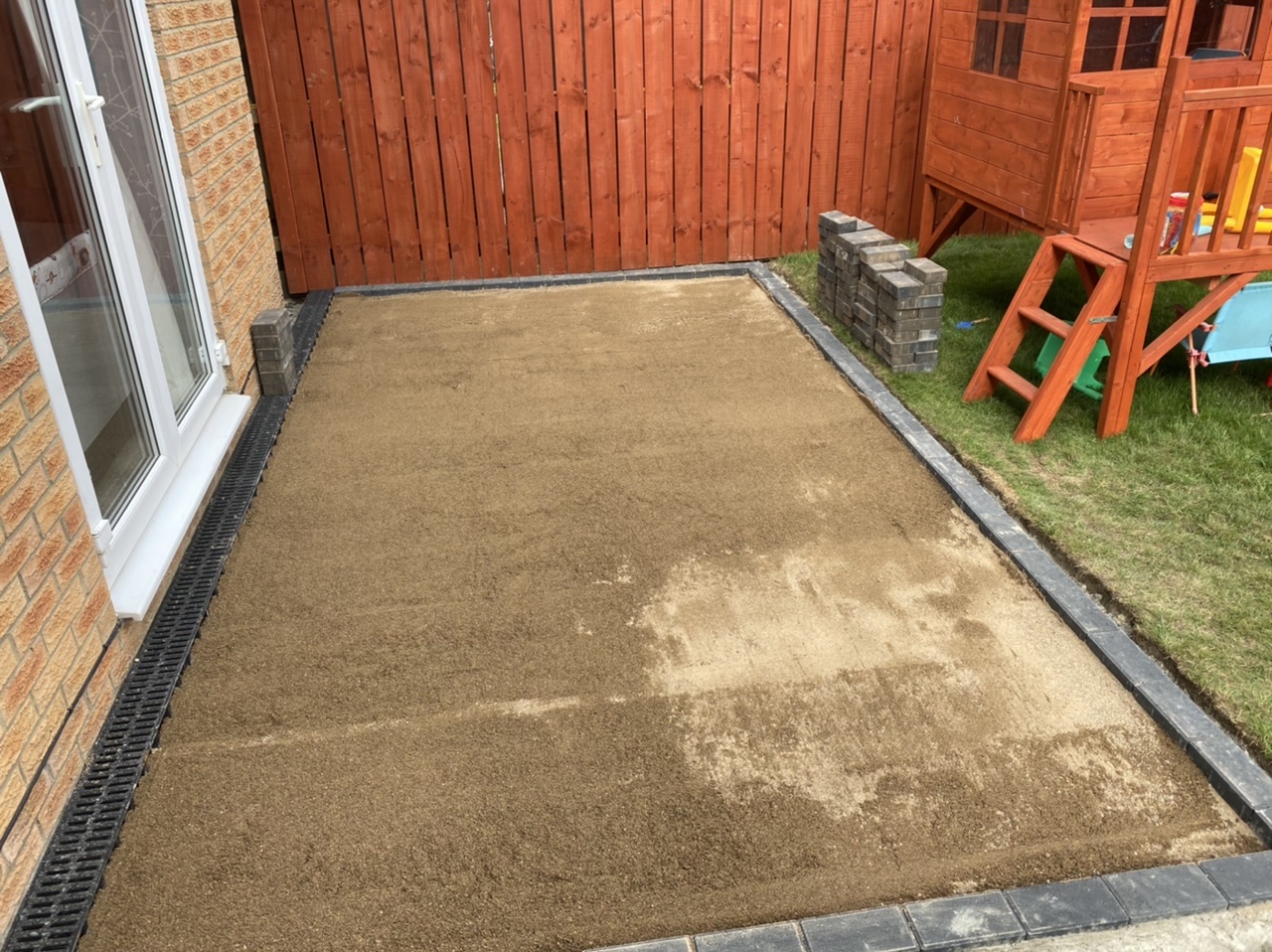 Add and compact a layer of fine sand on the gravel; Now, take the vibrator over the pit. At new driveway company we compress the sand with a wa.